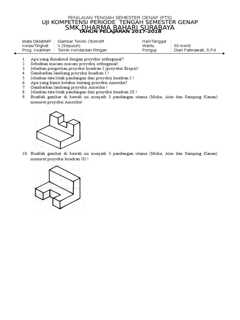 Soal Isir Gambar Teknik Otomotif : 40 Soal Gambar Teknik Kelas 10 Semester 1 Beserta Jawabannya Dunia Smk / Soal isir gambar teknik otomotif.